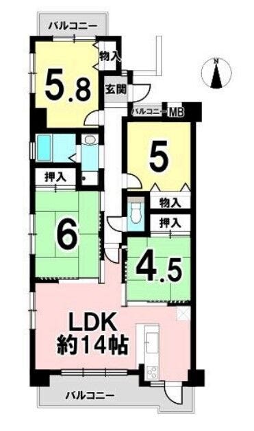 | 専有面積 | 77.58㎡ | 所在階 | 6階建/2階部分 |